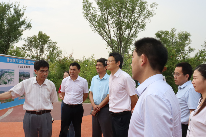 考察團首先到徐州市進行了考察,并在徐州市住建局相關(guān)領(lǐng)導(dǎo)的陪同下,通過實地察看、聽取介紹等形式,對徐州市政綠化建設(shè)、河道治理、城市中心游園綠化、水系建設(shè)、管理綠化以及配套設(shè)施建設(shè)等進行了詳細(xì)考察。次日,考察團實地考察了安徽交航公司承建的淮北市中湖礦山地質(zhì)環(huán)境治理PPP項目,詳細(xì)了解了中湖項目治理建設(shè)過程。